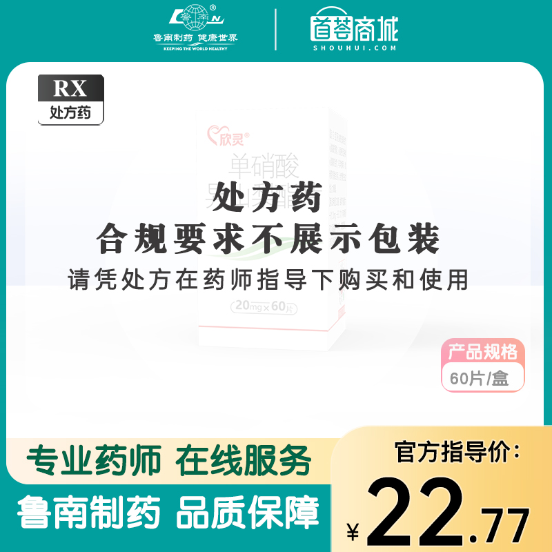 中西药品 > 心脑血管 >冠心病 >鲁南制药官方旗舰店 >欣灵 单硝酸异山梨酯片