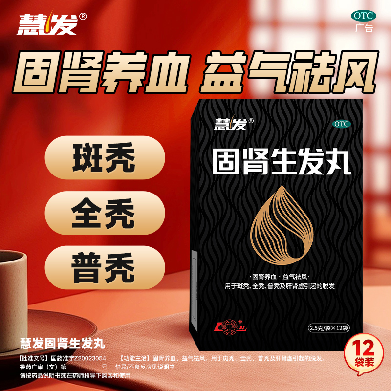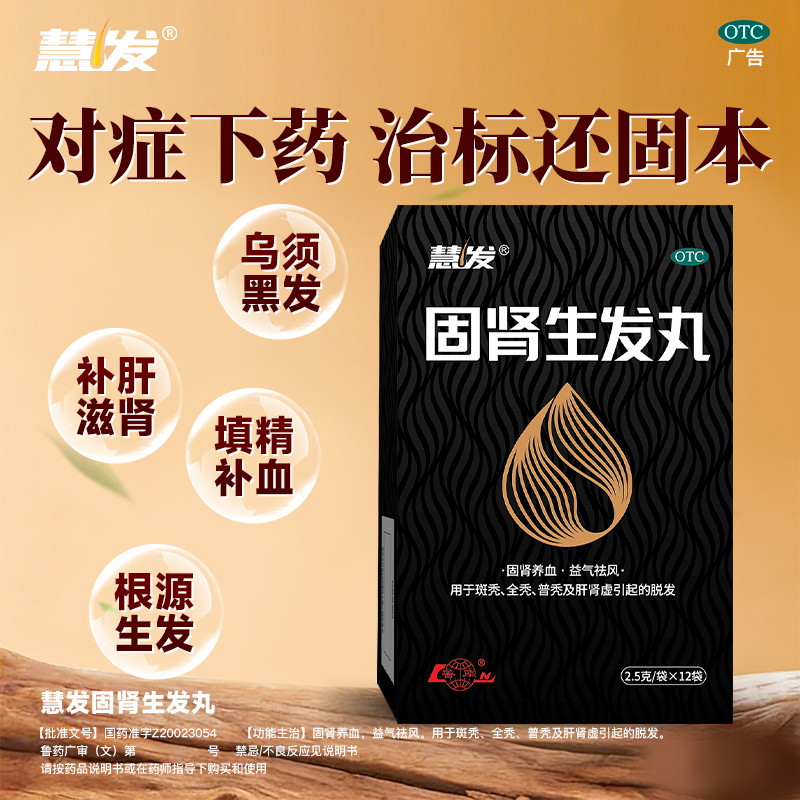 非处方药 鲁南慧发固肾生发丸2.5g*12袋/盒 滋补肝肾 生发密发 头发稀少 掉发