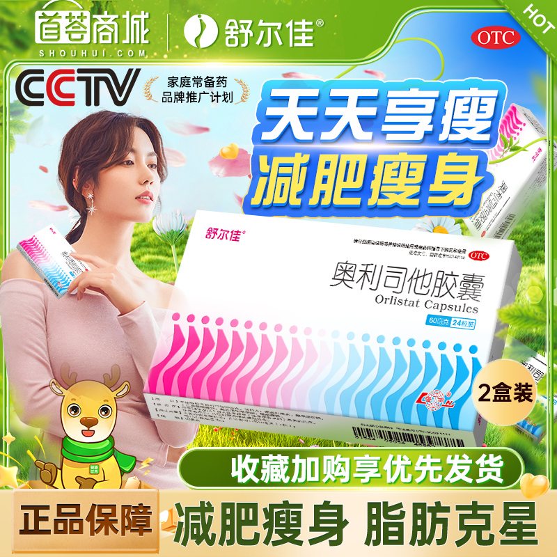 非处方药 24粒*2盒 舒尔佳 奥利司他胶囊 60mg*24粒 减脂减重 减肥药 塑身排油瘦身 OTC认证减肥